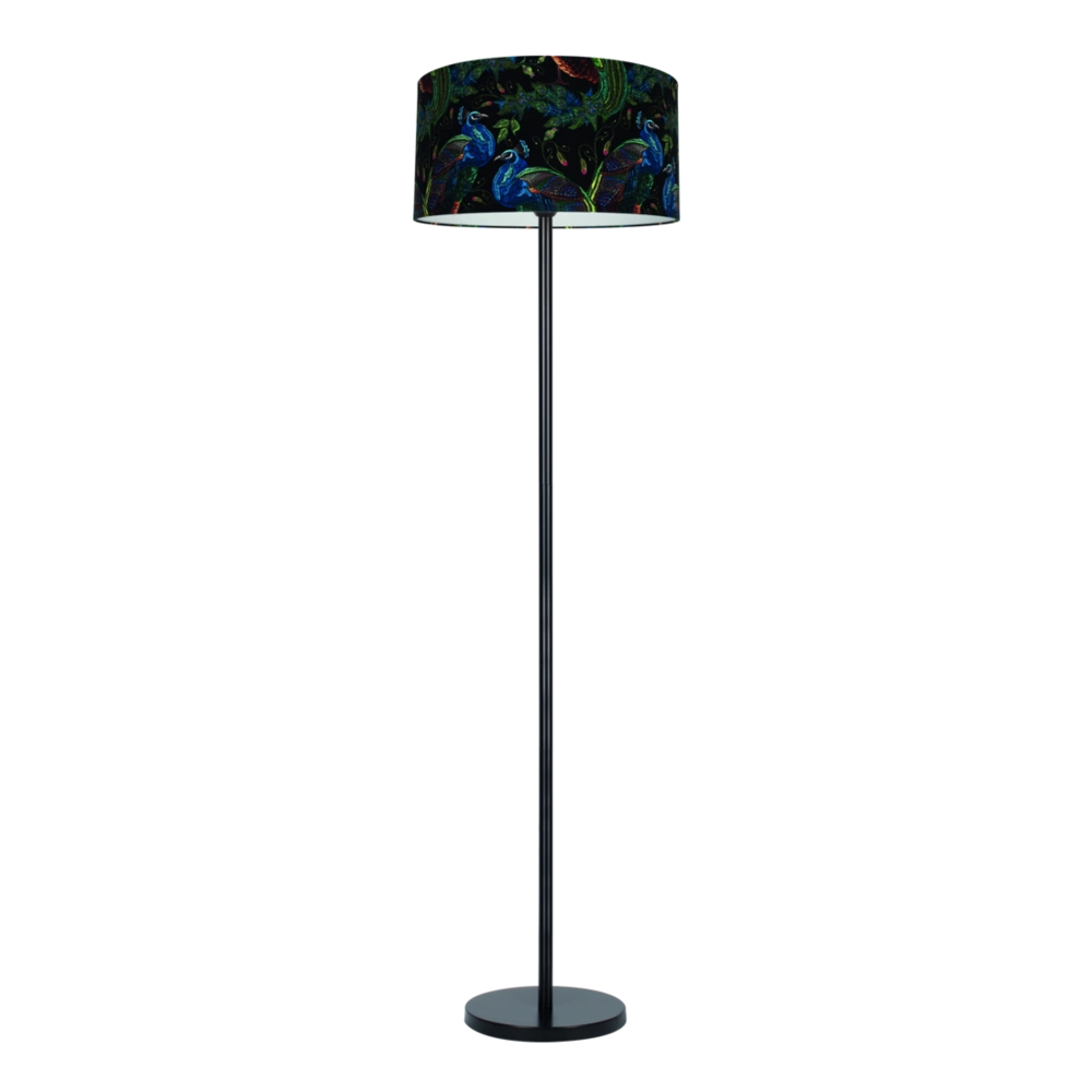 Dodaj wyjątkowy styl i kolor do swojego wnętrza z lampą podłogową Paon. Jej elegancka konstrukcja łączy czarny metal z multikolorowym velurem w efektowny wzór pawiego oczka, który tworzy unikalny akcent w każdej przestrzeni. Czarny kabel PVC uzupełnia nowoczesny wygląd lampy. Z pojedynczym źródłem światła o maksymalnej mocy 60W, lampa Paon zapewnia ciepłe i intensywne oświetlenie, które doskonale sprawdzi się w salonie, sypialni czy gabinecie. Jej oryginalny wzór i nowoczesny design sprawiają, że jest to idealny wybór dla osób poszukujących eleganckiego i charakterystycznego elementu dekoracyjnego.