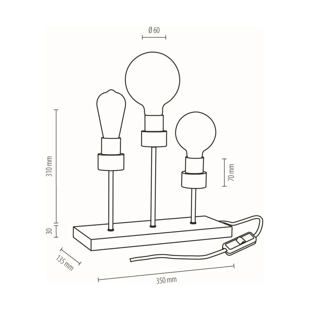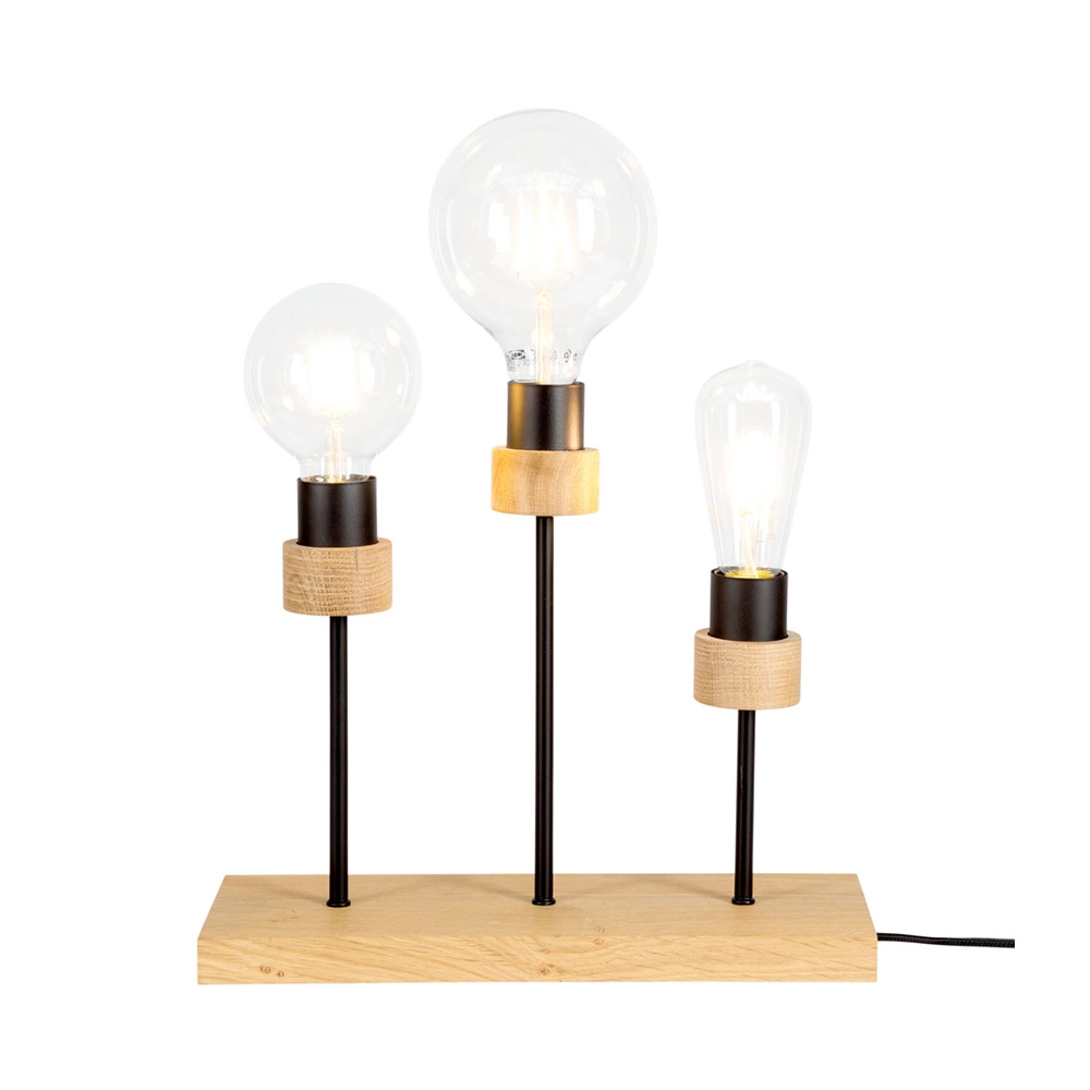 Lampa stołowa Chandelle 3xE27 maks. 25W Dąb olejowany/Czarny metal/Czarny kabel z tkaniny 84149374