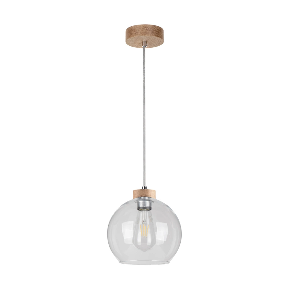 Lampa Wisząca Laguna Wood 1xE27 Max.60W Dąb Olejowany/Przezroczysty Kabel PCV/Przezroczyste Szkło 18710174