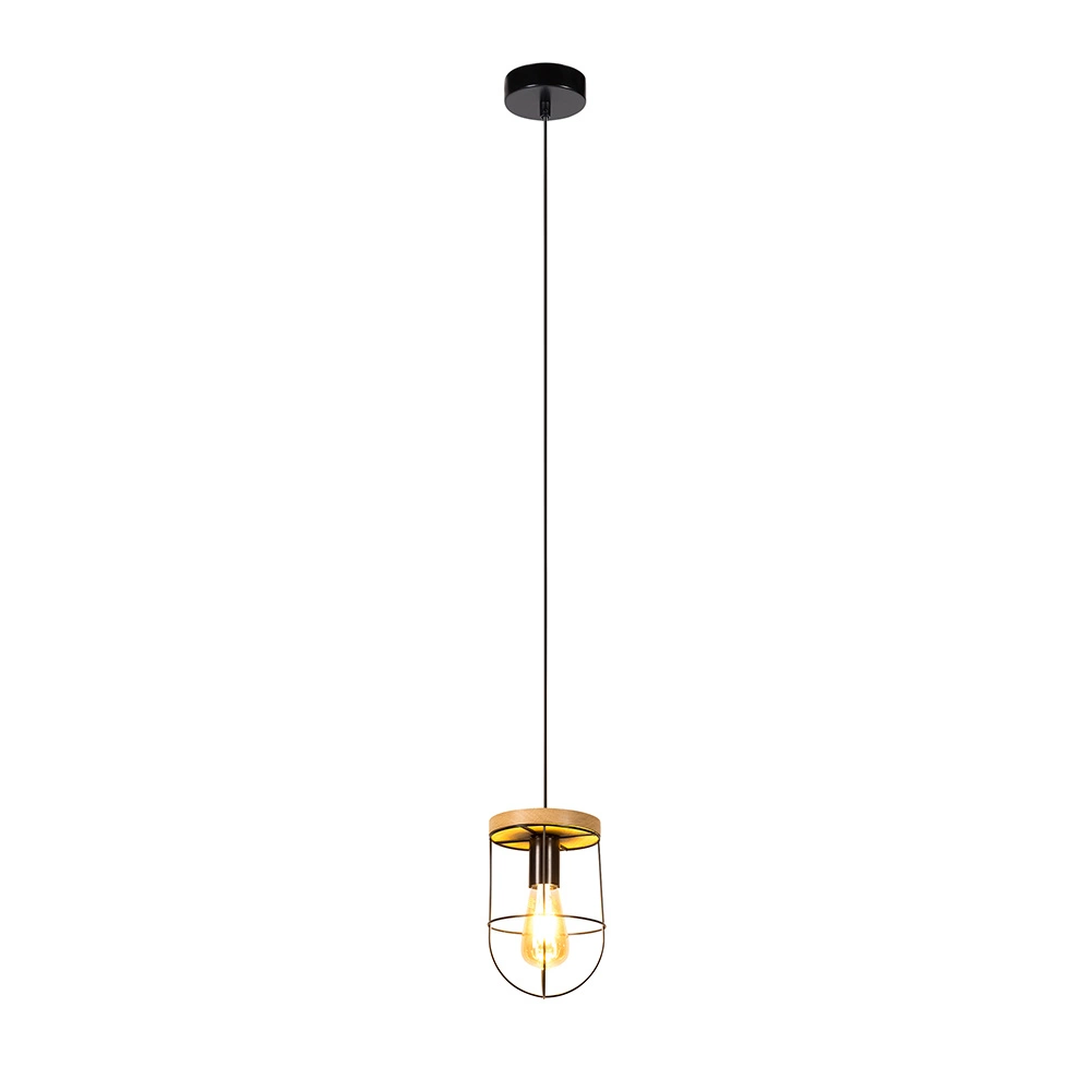 Lampa Wisząca Netuno 1xE27 Max.60W Dąb Olejowany/Czarny Metal/Czarny Kabel PCV 184159104