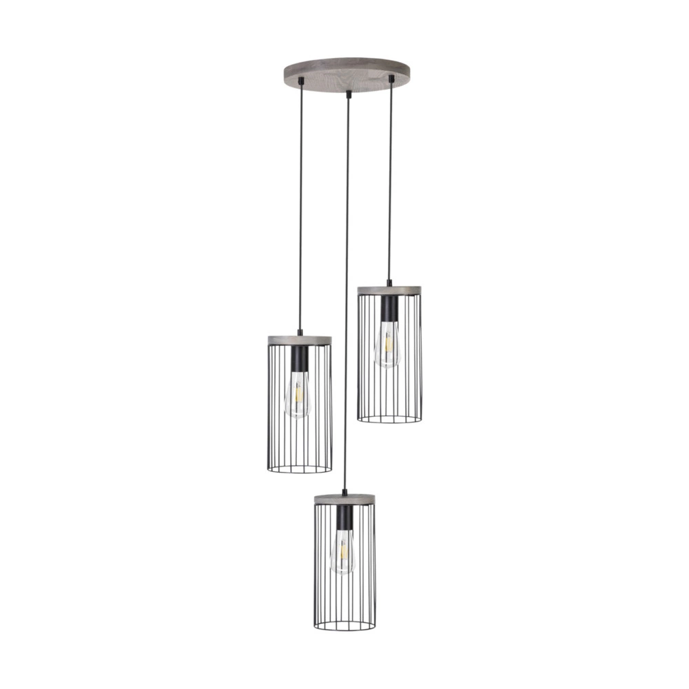 Lampa Wisząca Timeo 3xE27 Max.60W Bejcowana Sosna Szara/Czarny Kabel PCV/Czarny Metal 195109357R