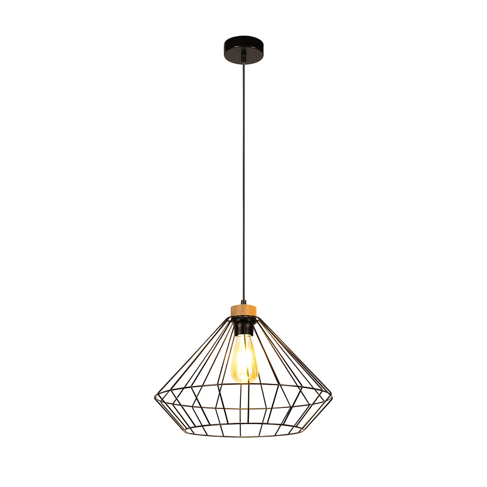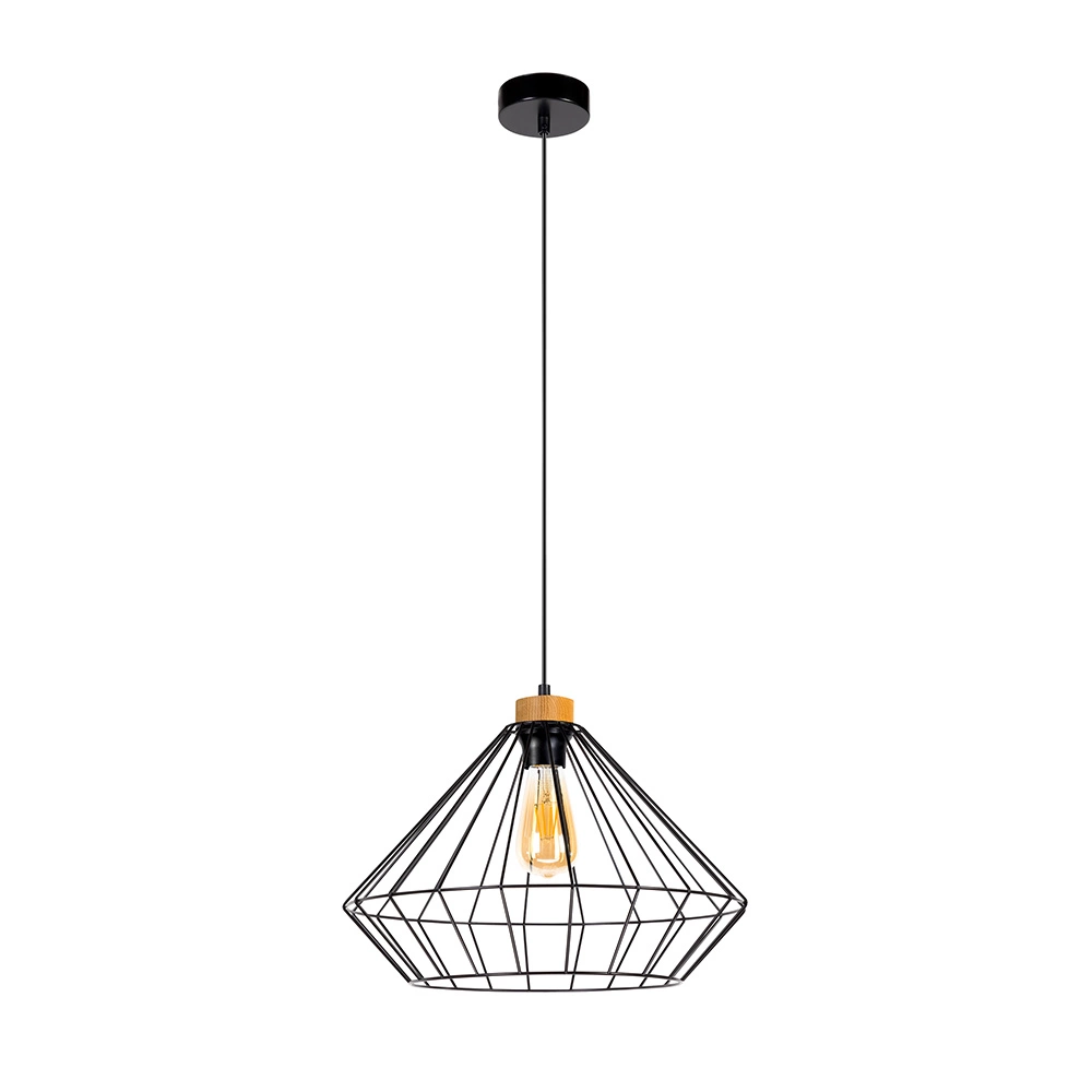 Lampa wisząca Raquelle 1xE27 maks. 60W Dąb olejowany/Czarny metal/Czarny kabel PCV 187219104