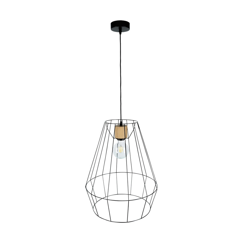 Lampa wisząca Endorfina 1xE27 Max.60W Dąb olejowany/Czarny metal/Czarny kabel z tkaniny 132219104
