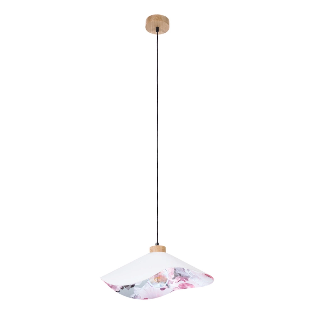 Kwiatowa lampa wisząca Hattu 1xE27 maks. 40W Dąb olejowany/Czarny kabel z tkaniny/Szara tkanina i wielokolorowy jedwabny klosz 1614719174