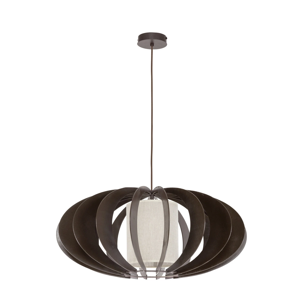 Lampa wisząca Keiko 1xE27 maks. 60W drewno wenge/czarny metal/beżowy klosz z tkaniny 1030151